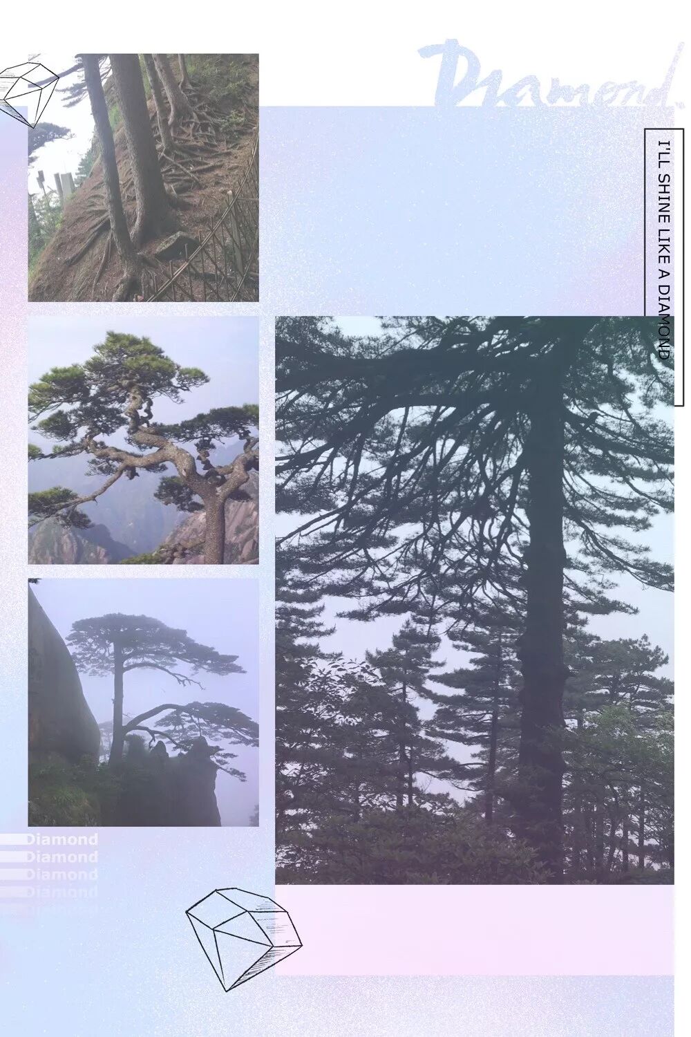 黄山奇松针叶短硬,树冠扁平,茎秆粗韧,或耸立挺拔,或翠枝舒展,或虬跟盘结,千姿百态,不了解内情的人以为出自于园艺师之手,其实这就是他们本来的姿态。