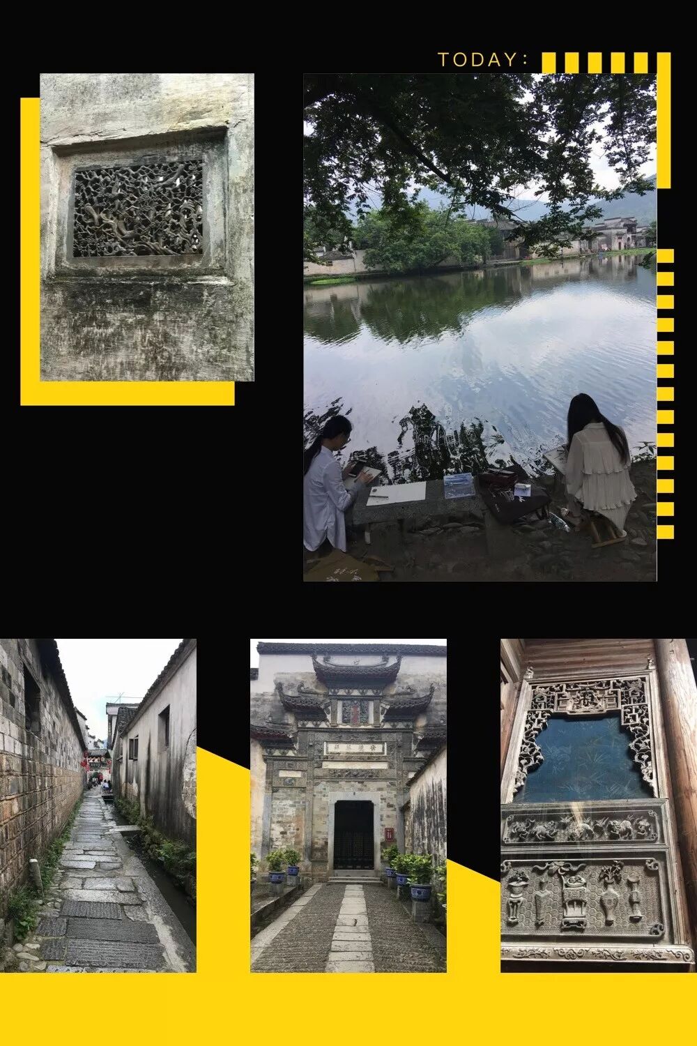 轻轻地,我来了,沿着明清的余脉,走进恍如隔世的一纸水墨。6月4日,我们一行人一不小心就走进了黟县宏村画卷里。古村落、古居民,住在里面仿佛与世隔绝,南湖边、小巷里随处可见一些安静的写生人在这里作画,砖雕、石雕、木雕在这里被发挥的淋漓尽致。